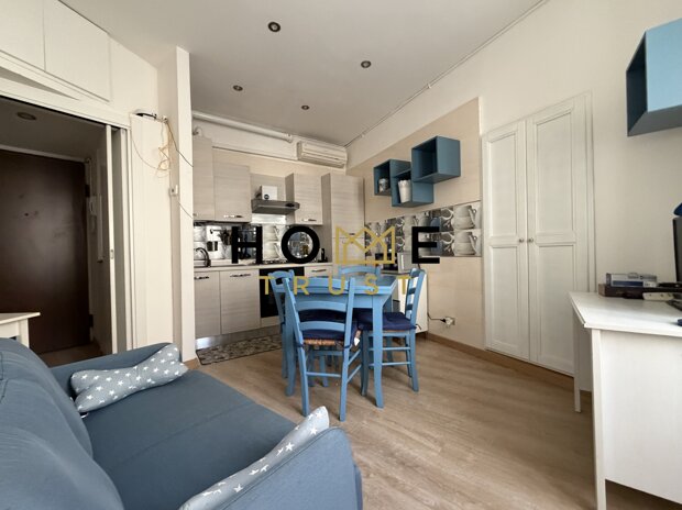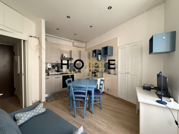 l'immobile è dotato di aria condizionata e di una luminosa e tranquilla esposizione sull'interno cortile ed è composto da ingresso su disimpegno, bagno cieco con piatto doccia, zona giorno cucina e camera da letto matrimoniale.