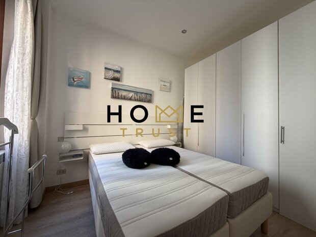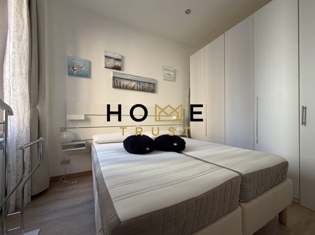 L'immobile è dotato di impianto di aria condizionata ed è composto da ingresso sulla zona giorno con affaccio sull'ampio terrazzo, cucina abitabile, anch'essa con ingresso sul terrazzo; disimpegno, bagno finestrato con vasca, dotata anche di box doccia, camera da letto matrimoniale con balcone ed ampio armadio su misura.